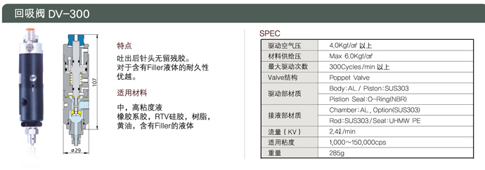 • 產(chǎn)品名稱:回吸閥 DV-300