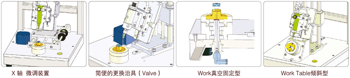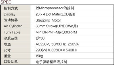 ■ 適用于圓形作業(yè)的設備,把產(chǎn)品放置在Turm Table上旋轉(zhuǎn)后使流體定量吐出的裝置 ■ 通過一次的輸入信號,實現(xiàn)啟動,上下,旋轉(zhuǎn),移動,停止等運作的自動控制,可以很好的實現(xiàn)圓形點膠作業(yè) ■ 控制功能是由液體控制功能和Know-How技術(shù)的結(jié)合,構(gòu)思出多種產(chǎn)品的簡便及最適的點膠作業(yè) ■ 具有回吸功能,防止點膠后的留殘膠 ■ 具有計數(shù)功能,便于生產(chǎn)管理 ■ 上下驅(qū)動部采用微調(diào)功能,可以實現(xiàn)微細的調(diào)整 ![]() |