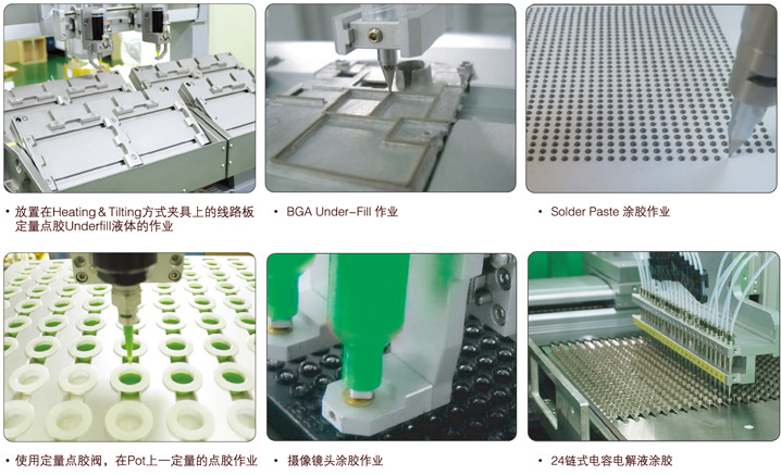 ■ 采用多頭治具,提高單位時(shí)間內(nèi)的生產(chǎn)量。與點(diǎn)膠機(jī),配件組合使用時(shí),可以滿足點(diǎn),線,3次元點(diǎn)膠作業(yè)等 |